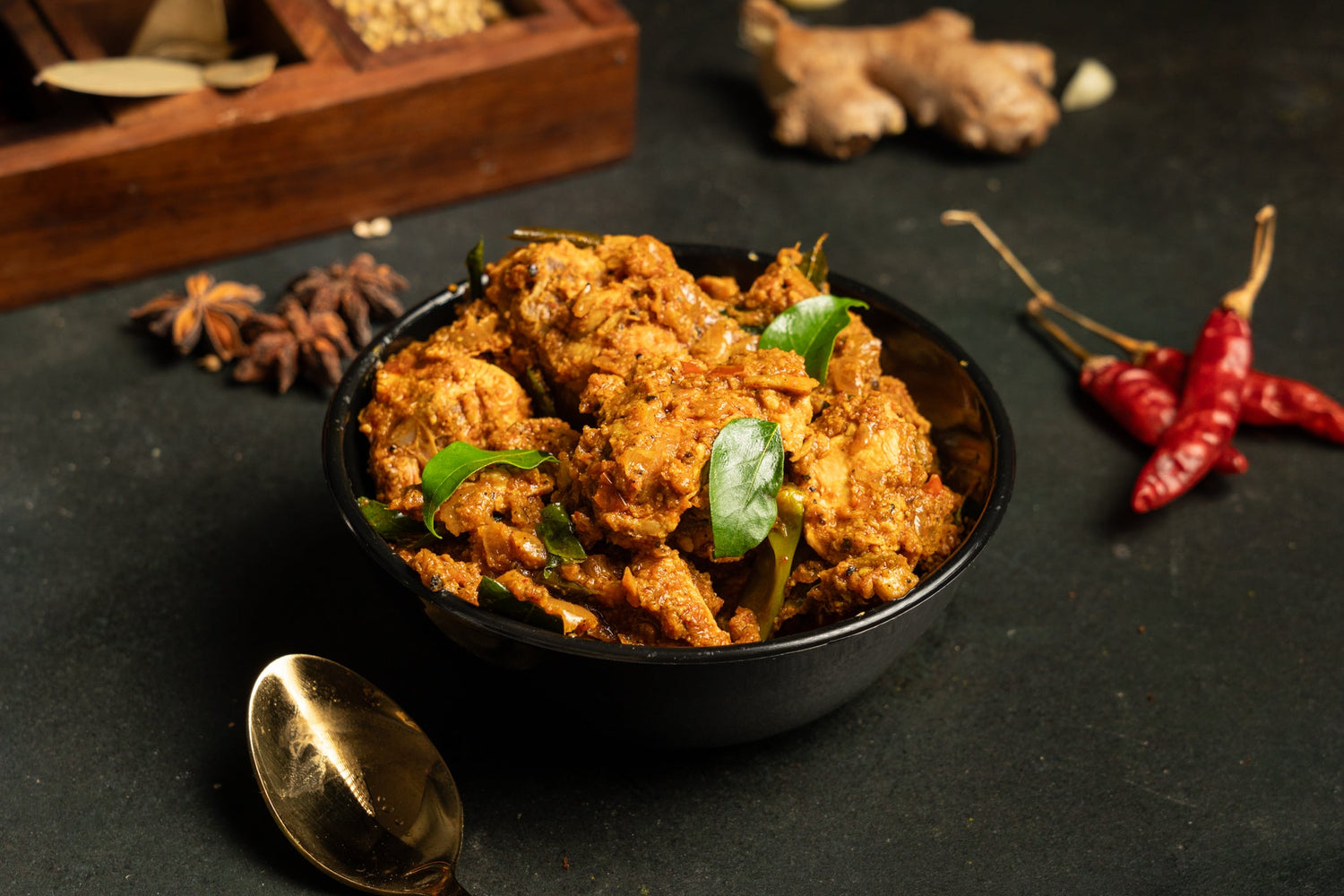 A kerela style chicken preparation made with exquisite in-house spice mix and flavoured with aromatic pandan leaves.